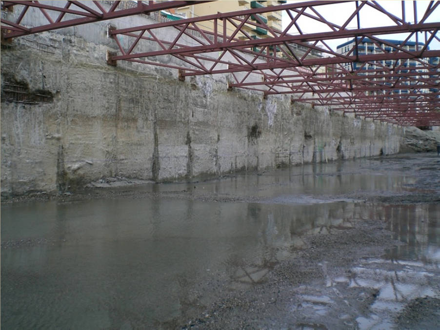 FCC. Estadio Ramón de Carranza, Cádiz. Filtraciones en losa de cimentación y juntas de pantalla.
