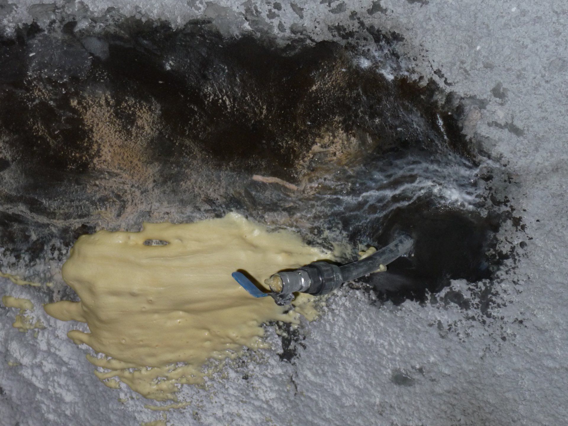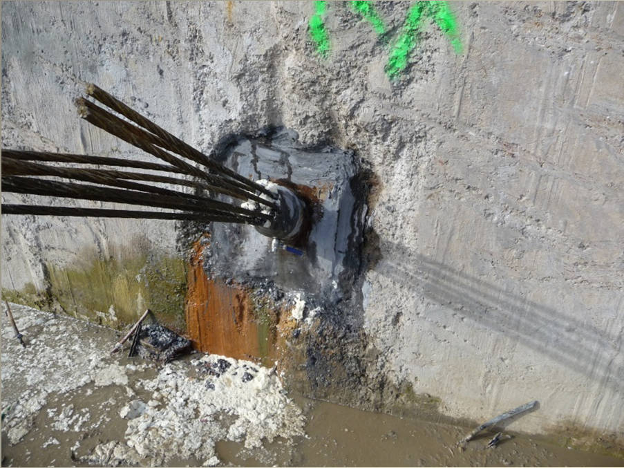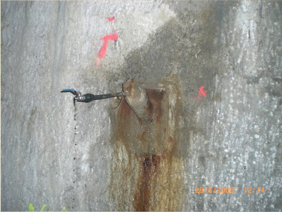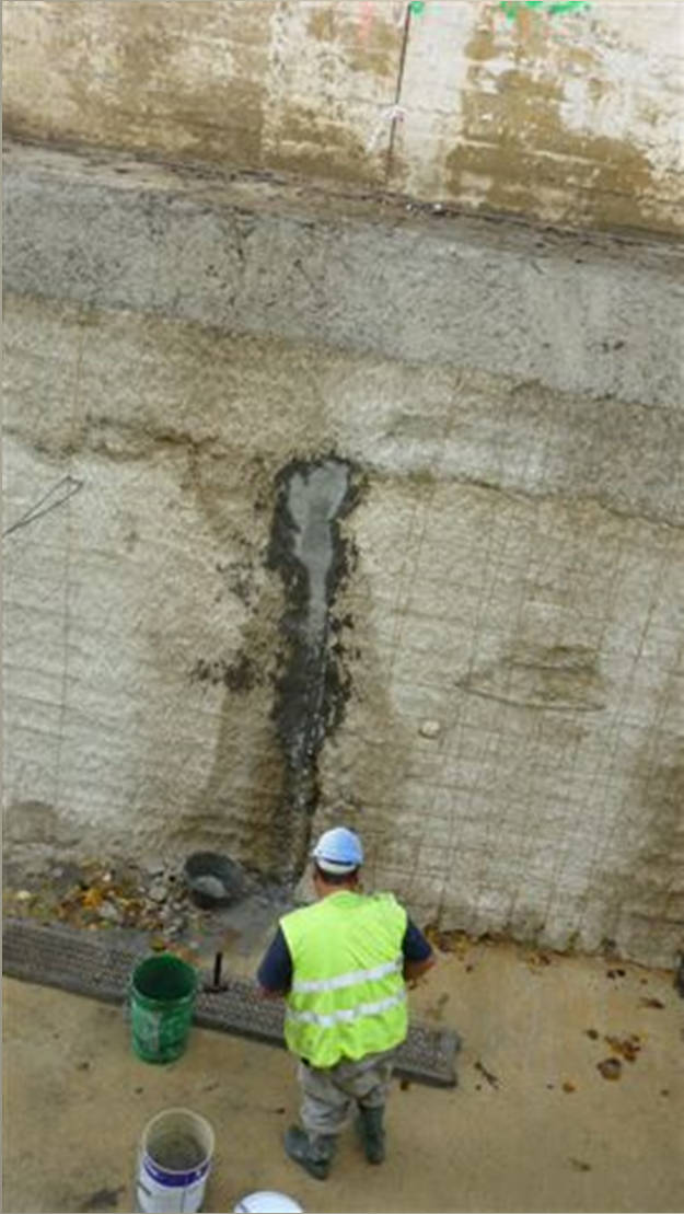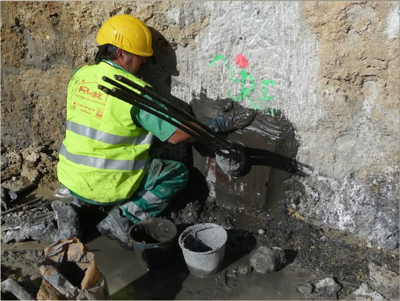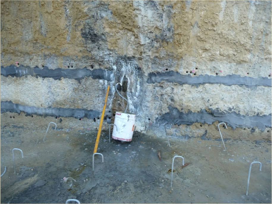 Cartuja Inmobiliaria. Eliminación de filtraciones en muro pantalla, uniones con losa, sellado de anclajes en parking San Cristóbal, Almuñécar, Granada.