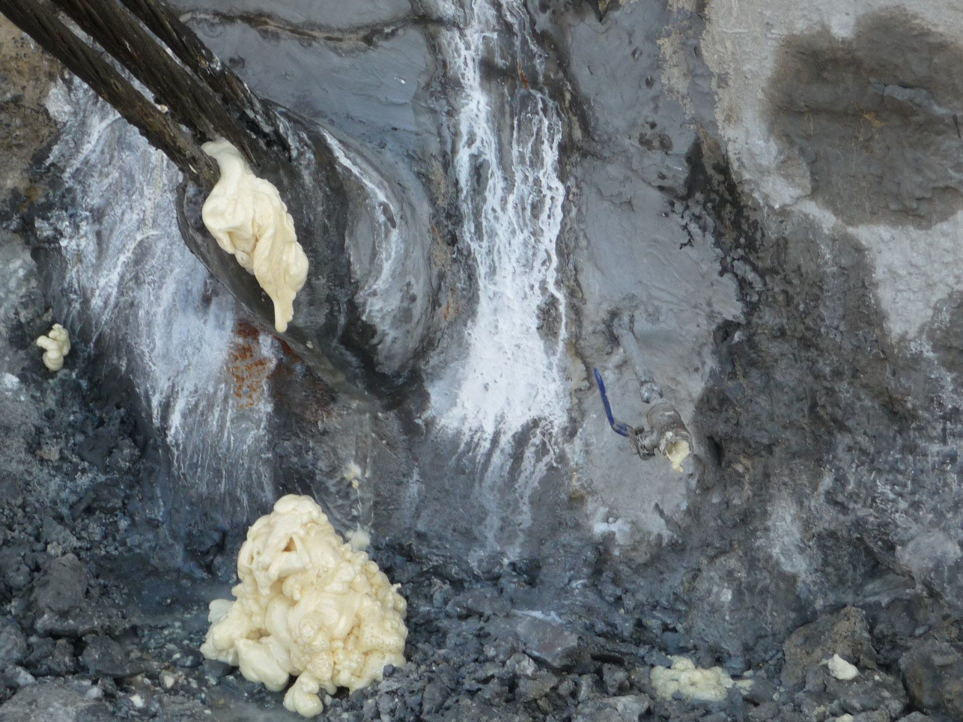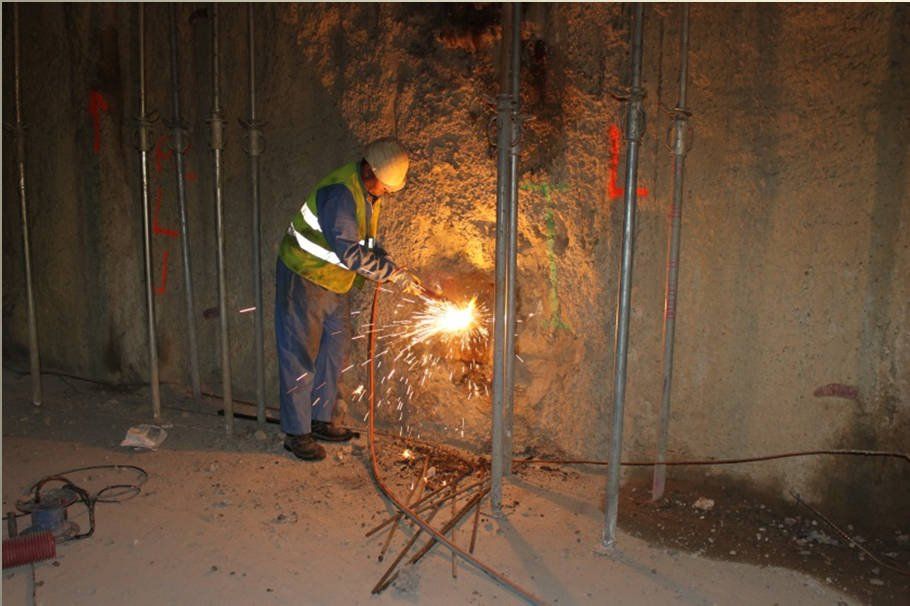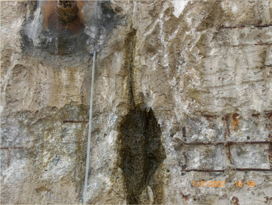 Acciona. Foso KAUDRUM Puerto de Huelva. Tratamiento de juntas de pantalla y posterior refuerzo de muro con gunita.
