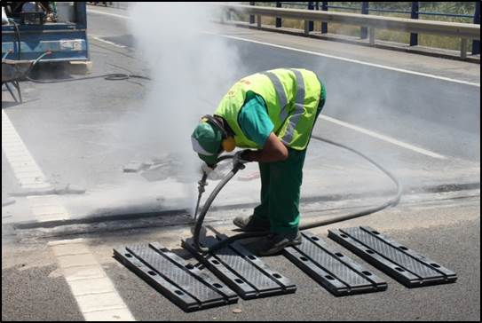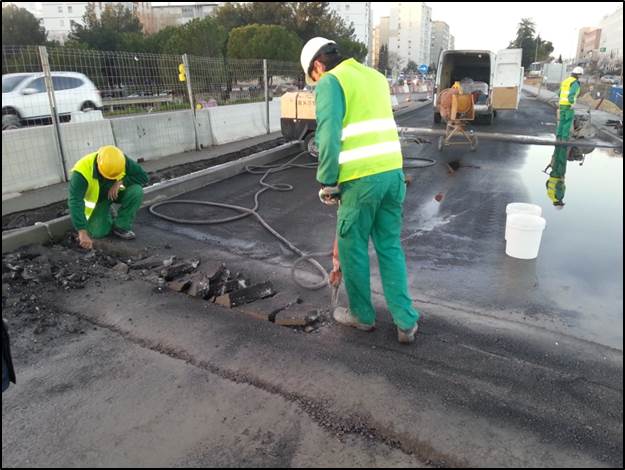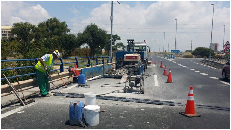 Imes Api, conservación de carreteras. Reparación de juntas en varios puntos del sector.